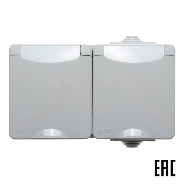 Розетка ЭРА 2х2P+E горизонтальная IP65, 16A-250В, ОУ, серый, 11-2603-03 2 227 ₽