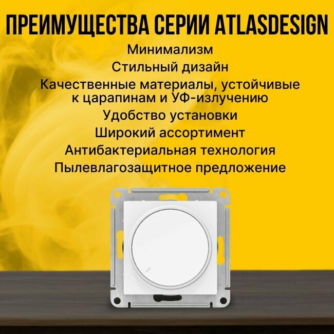 10 цен на Светорегулятор поворотно-нажимной AtlasDesign 400Вт механизм бел. | код.ATN000123 | Systeme Electric (10шт.в упак.)