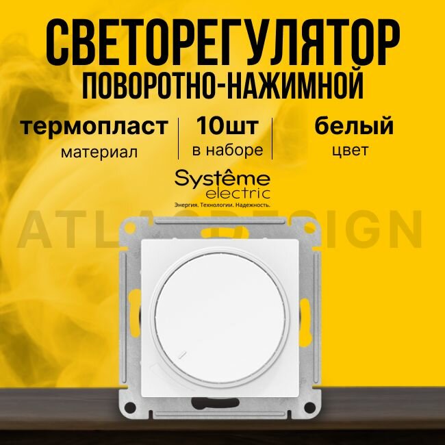 Отзывы на Светорегулятор поворотно-нажимной AtlasDesign 400Вт механизм бел. | код.ATN000123 | Systeme Electric (10шт.в упак.)