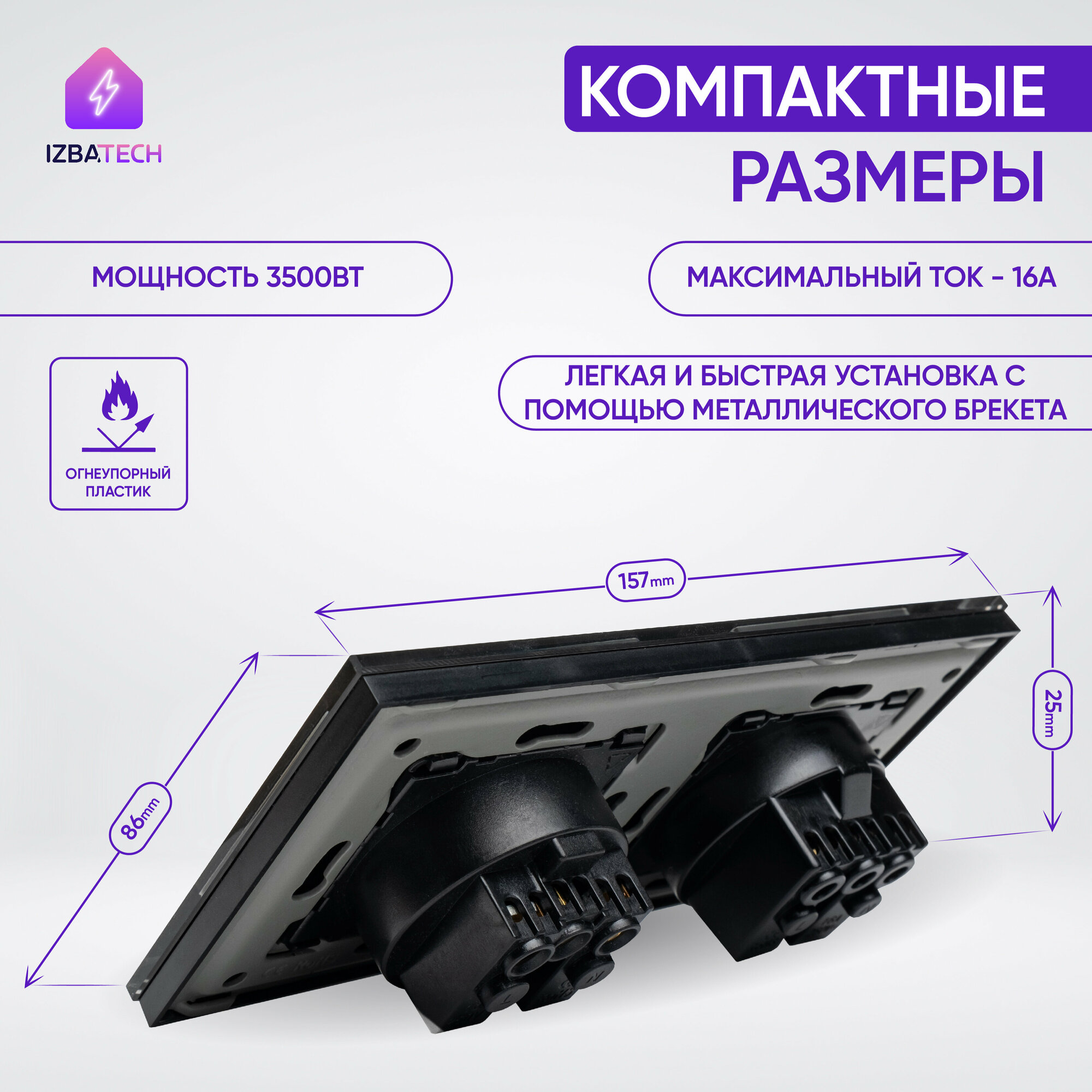 Отзывы на Двойная встраиваемая розетка черная на 2 поста 16А в рамке из закаленного стекла с заземлением и защитой от детей
