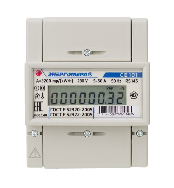 Отзывы на Счетчик CE101 R5 145 1ф 5-60А класс точн. 1.0 1 тариф. Энергомера 101001003009471