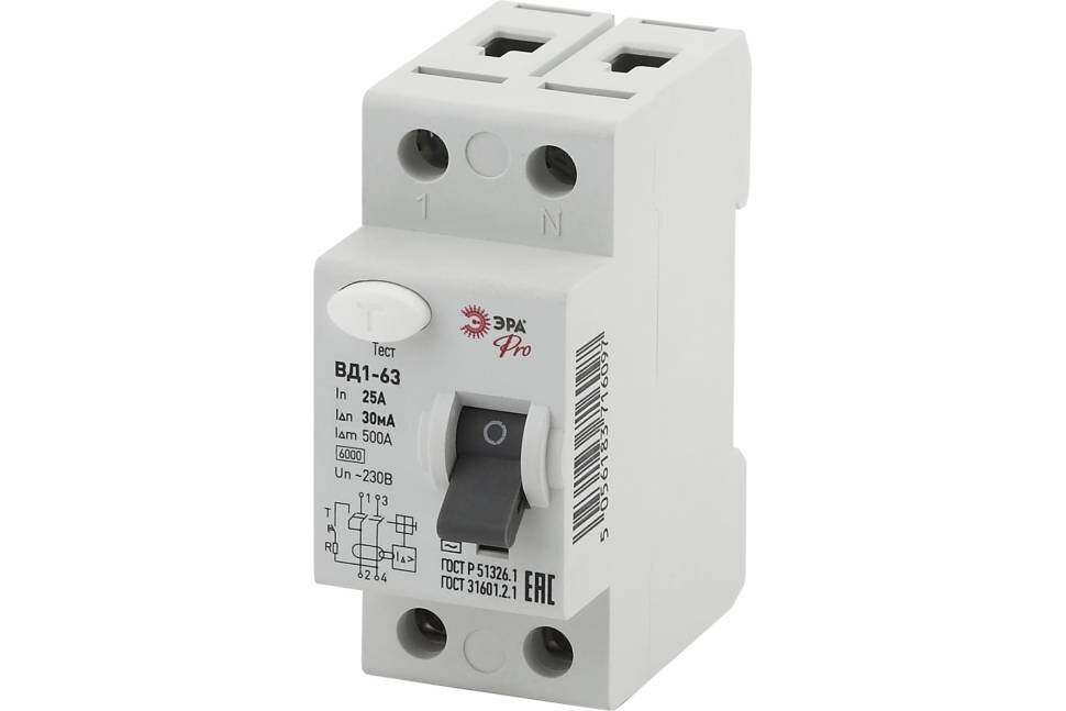 Эра Выключатель дифференциального тока (УЗО) 1P+N 63А 30мА ВД1-63 Pro NO-902-33 ЭРА Б0031879