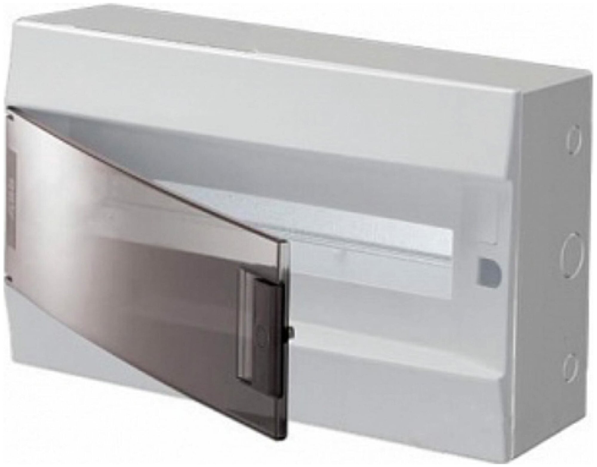 Бокс (щиток) на 12 автоматов Mistral65 1 ряд пластиковый наружный IP65 прозрачная дверь без клемм (ABB), арт. 1SL1202A00