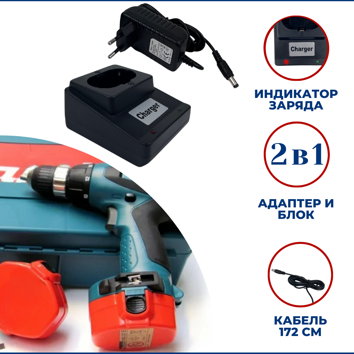 Отзывы на Зарядное устройство для шуруповертов 12V-18V, адаптер+блок питания
