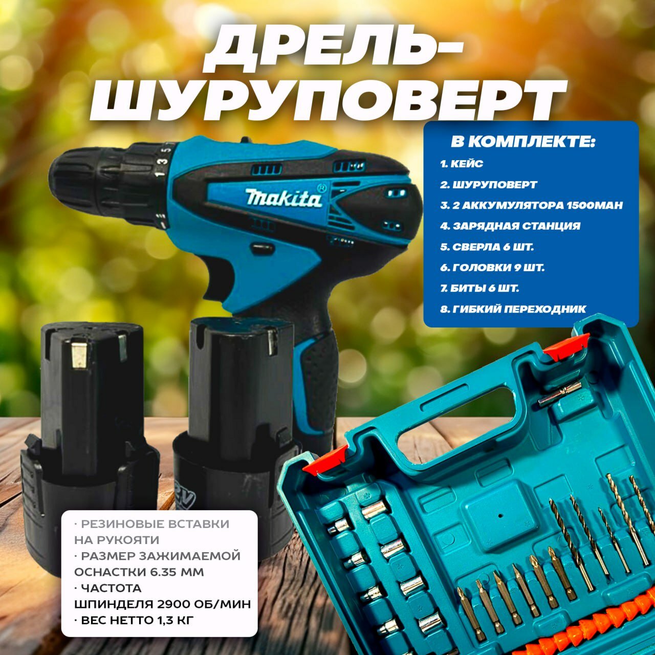 Дрель Шуруповерт с Набором "Всё Для Дома и Гаража" Свёрл Головок и Бит информация: