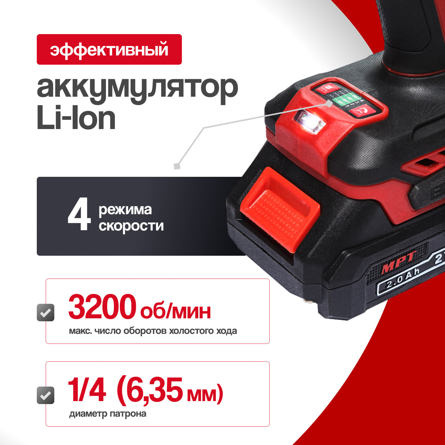 Отзывы на Винтоверт аккумуляторный ударный бесщеточный 21В MPT 230Нм 2х2Ач