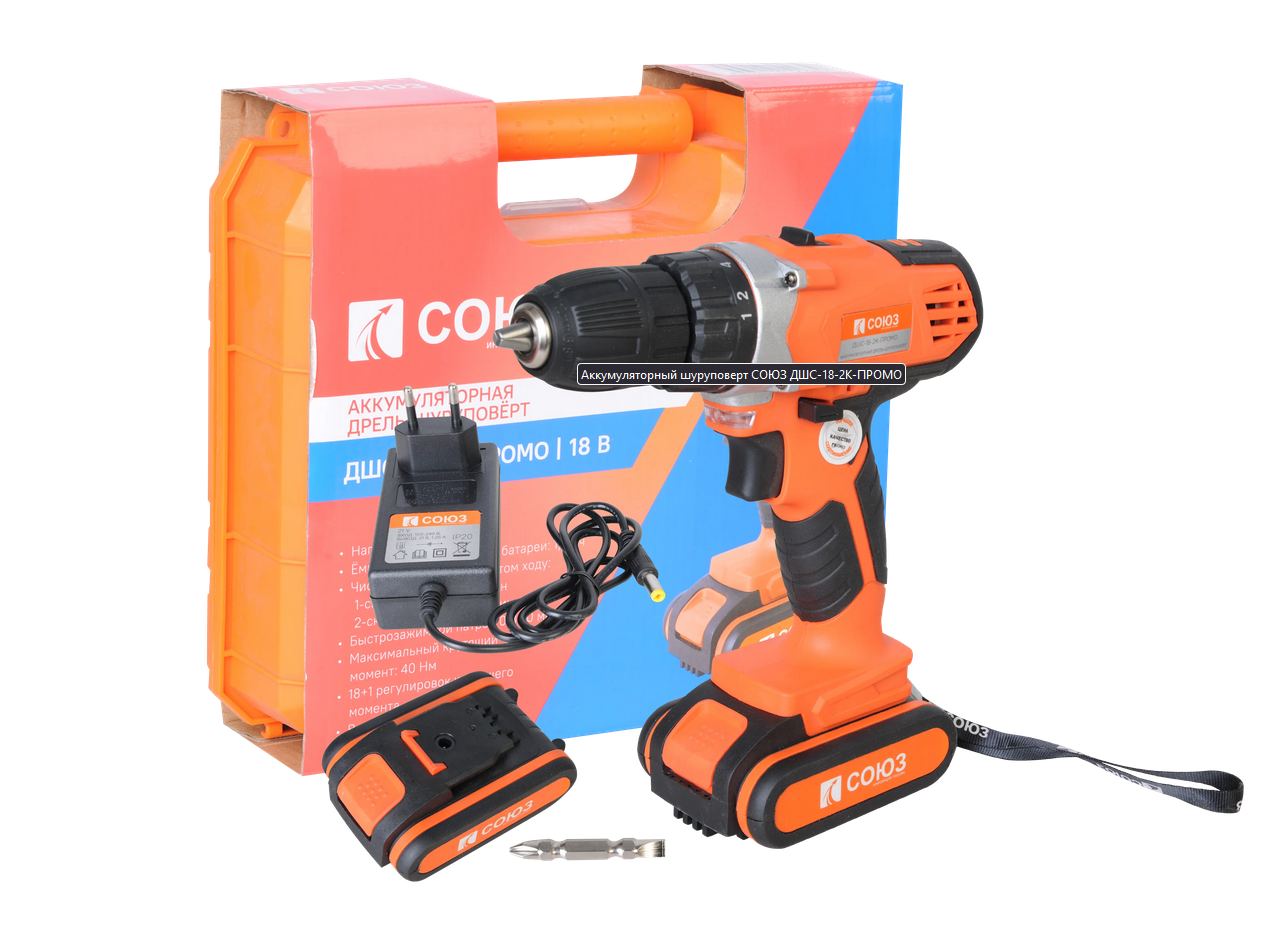Аккумуляторный шуруповерт СОЮЗ ДШС-18-2К-ПРОМО информация: