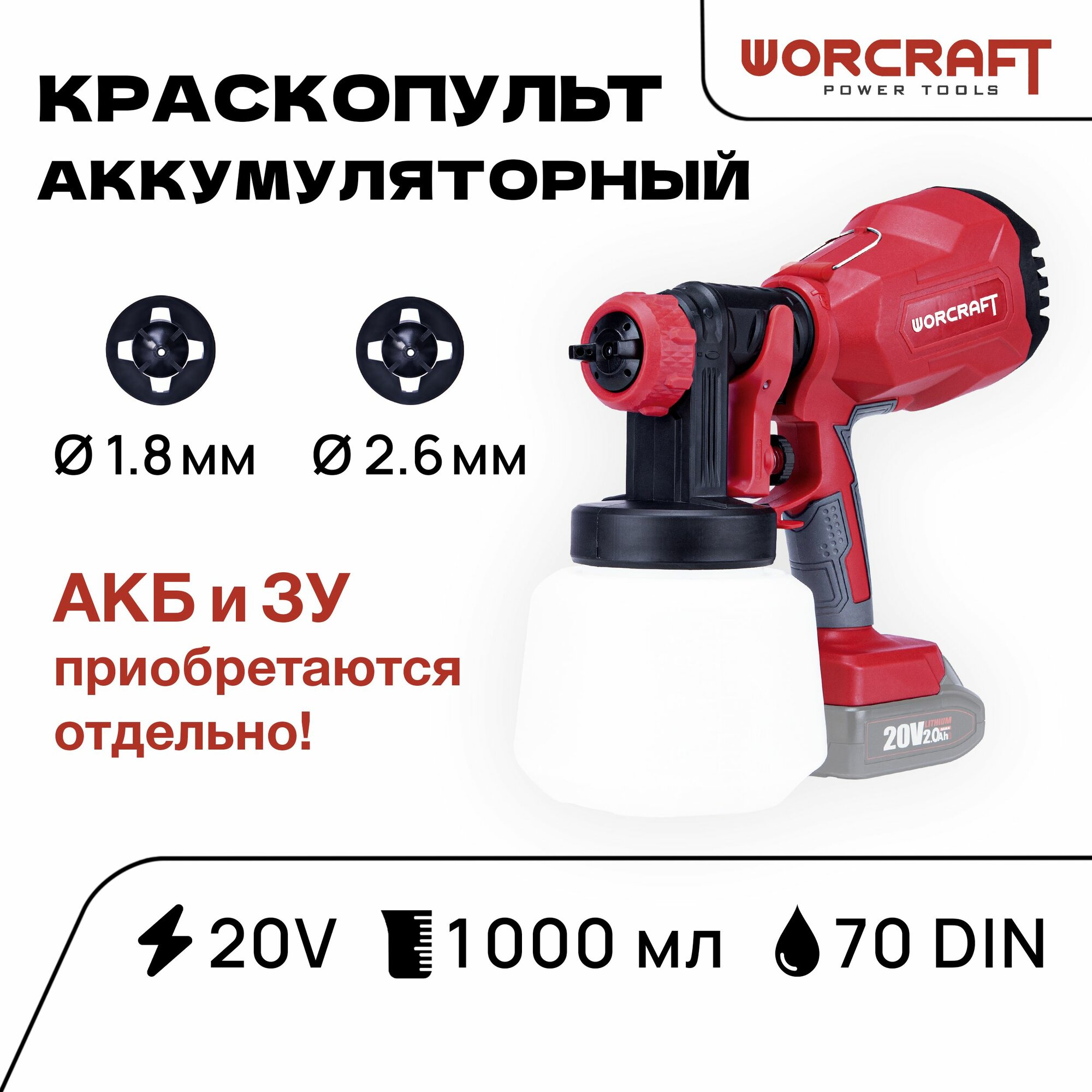 WORCRAFT Краскопульт электрический аккумуляторный для компрессора, распылитель садовый, 20 V, 250 Вт, 1000мл, 70 DIN( Без АКБ и СЗУ) информация: