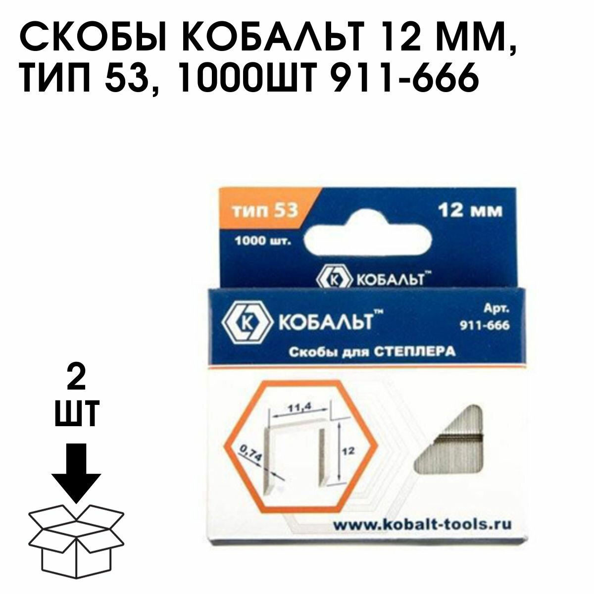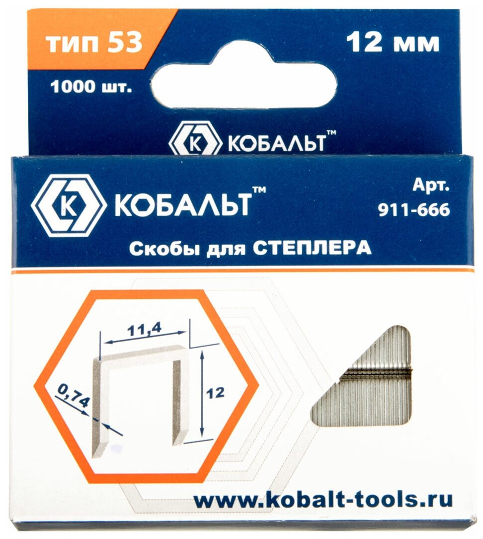 Скобы кобальт для степлера 12 мм, Тип 53, толщина 0,74 мм, ширина 11,4 мм, (1000 шт)