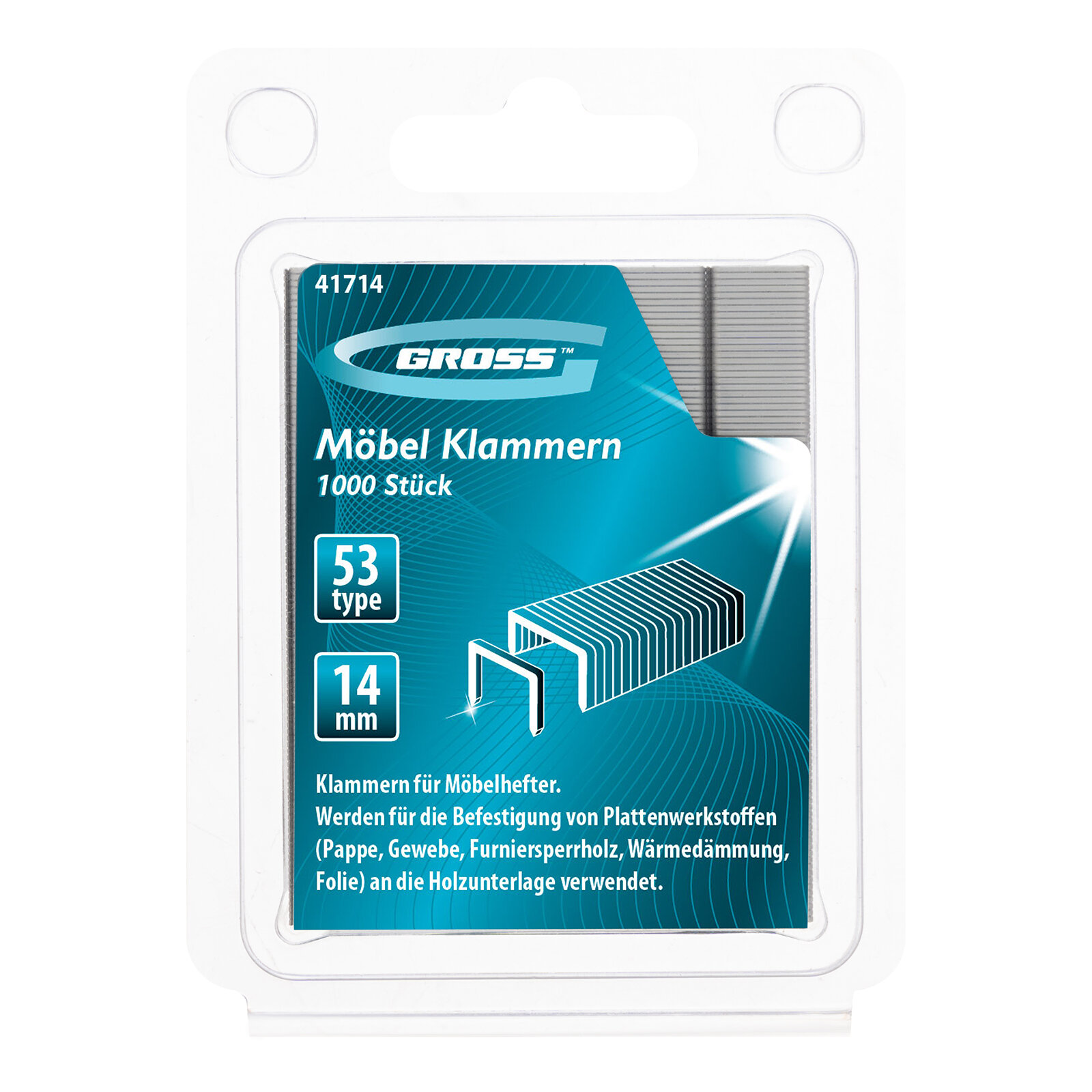 Скобы GROSS 14 мм, для мебельного степлера, усиленные, тип 53, 1000 шт. 41714 информация: