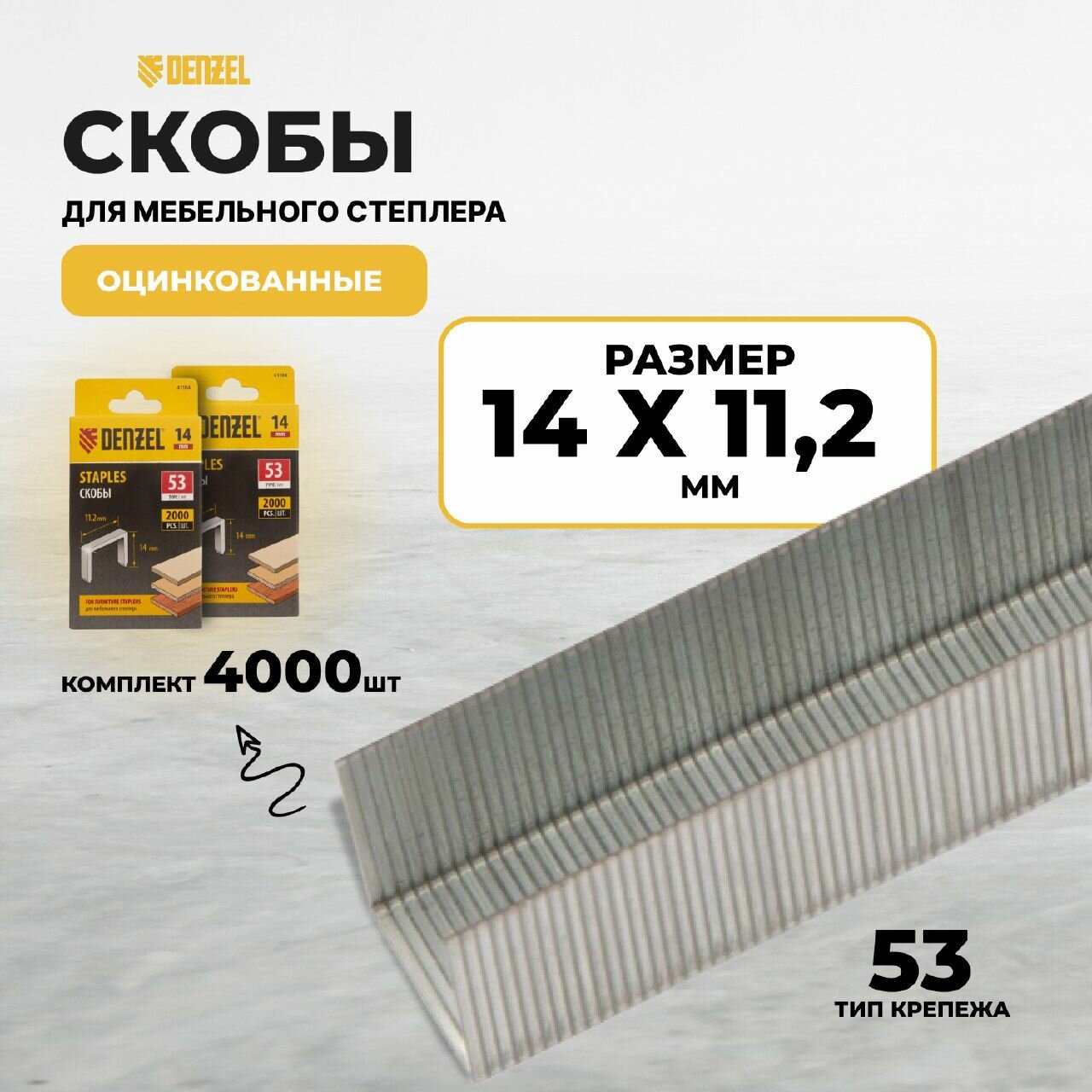 Скобы, 14 мм, для мебельного степлера, тип 53, 4000 шт. Denzel информация: