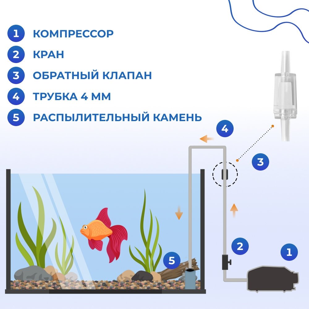 Отзывы на Комплект для аквариумного компрессора. Силиконовая трубка, камень, кран, обратный клапан.