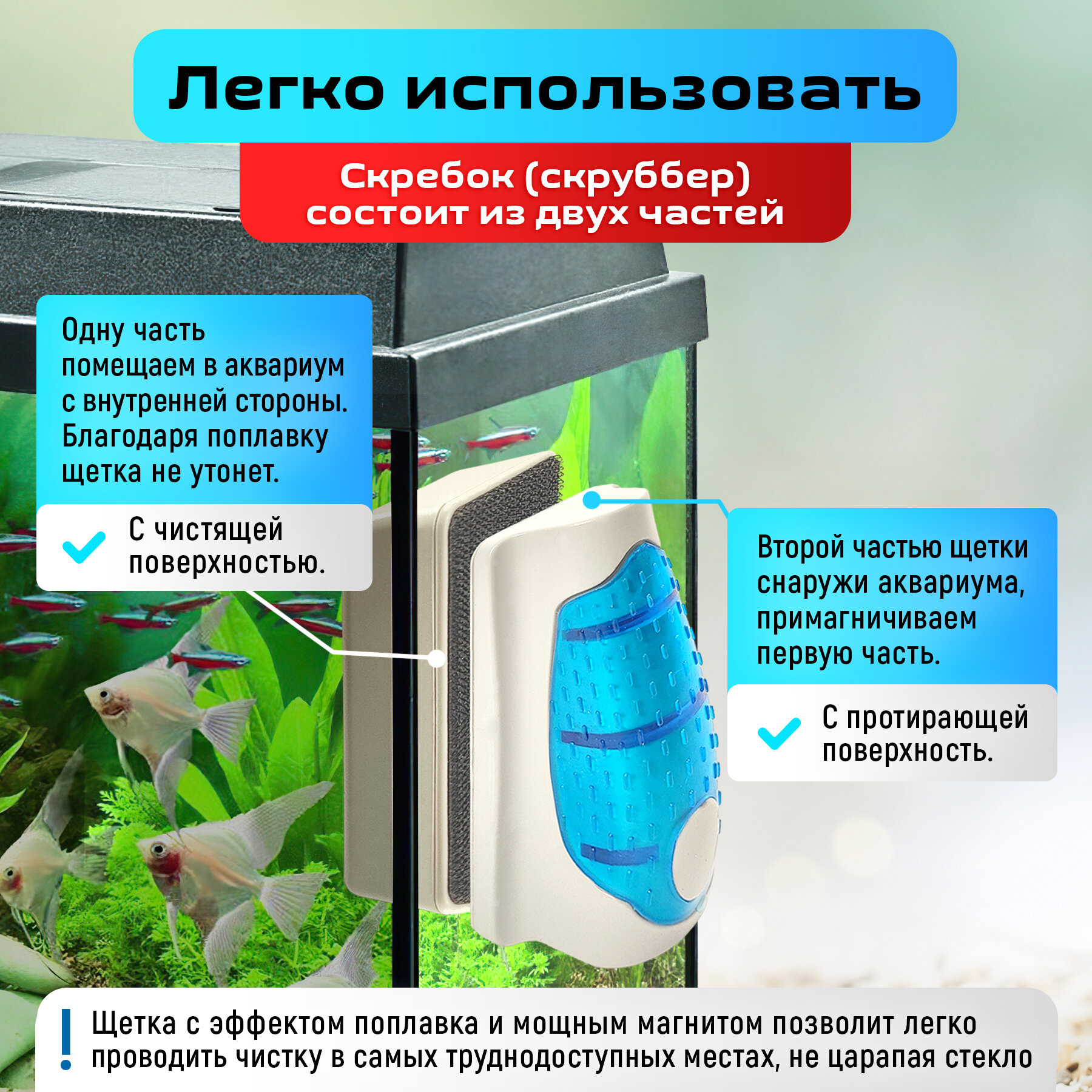 Отзывы на Магнитный скребок "Всплывающий" SOBO для аквариума, щетка для стекла 5-8 мм. Размер "M"