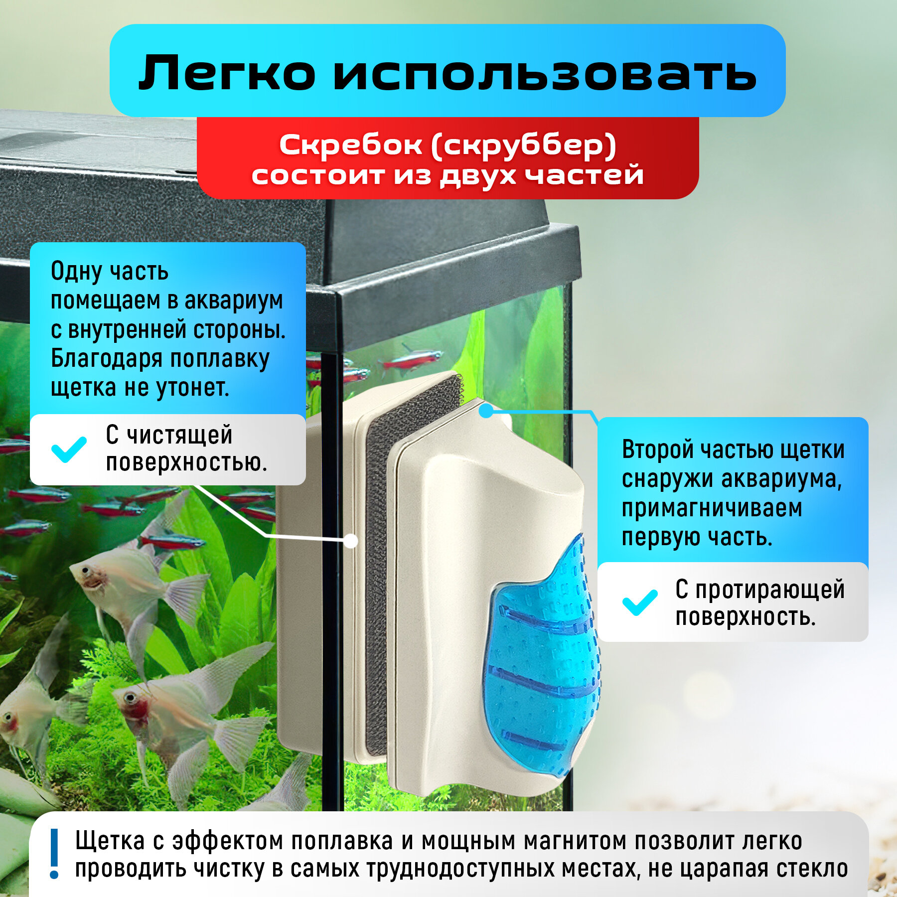 | Подробная комплектация | Магнитный скребок (скруббер) "Всплывающий" SOBO для аквариума – 1 шт. |