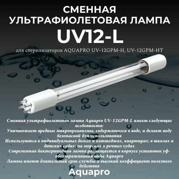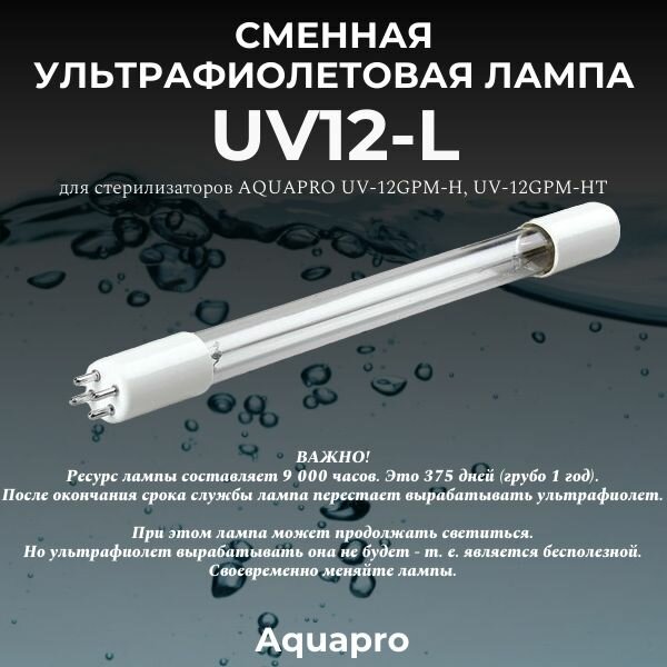 Сменная ультрафиолетовая лампа Aquapro UV12-L информация: