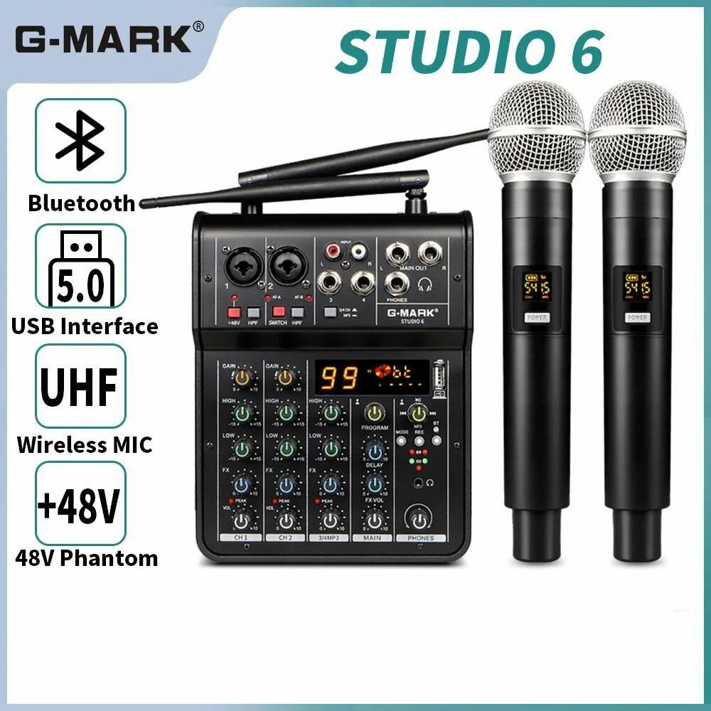 10 цен на Беспроводной 4-канальный микшер караоке G-mark Studio 6 bluetooth 2 микрофона black