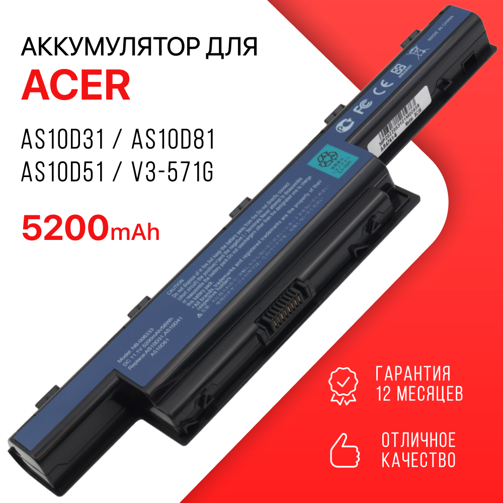 Аккумулятор для Acer AS10D31 / AS10D81 / AS10D51 / AS10D41 / Aspire V3-571G информация: