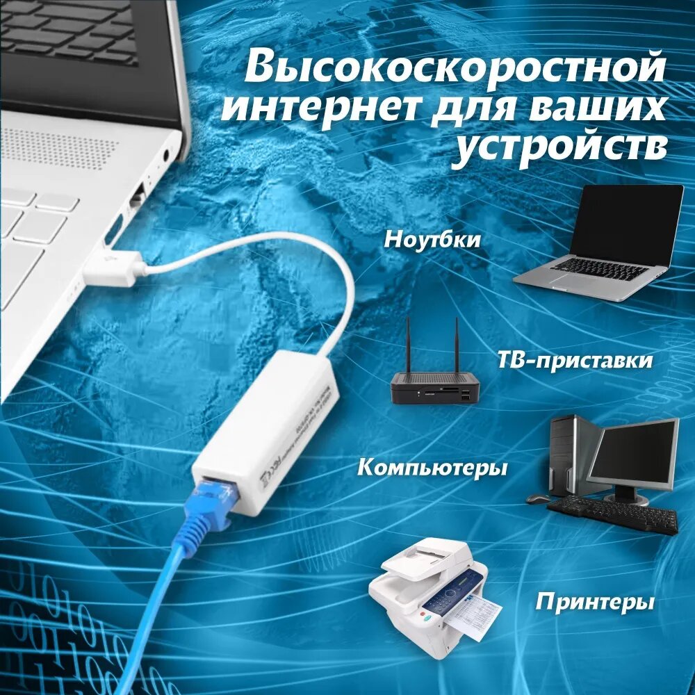 10 цен на Cетевой переходник USB-LAN, Ethernet адаптер, RJ45 100 Мбит/с