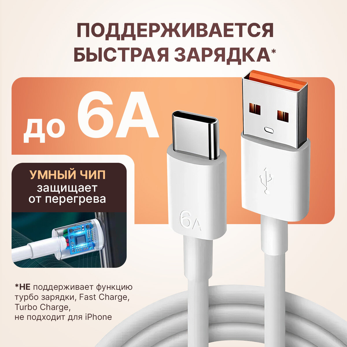 Кабель 6 ампер для быстрой зарядки телефонов и планшетов Xiaomi Honor Huawei USB Type-C 6A 1,5 м информация: