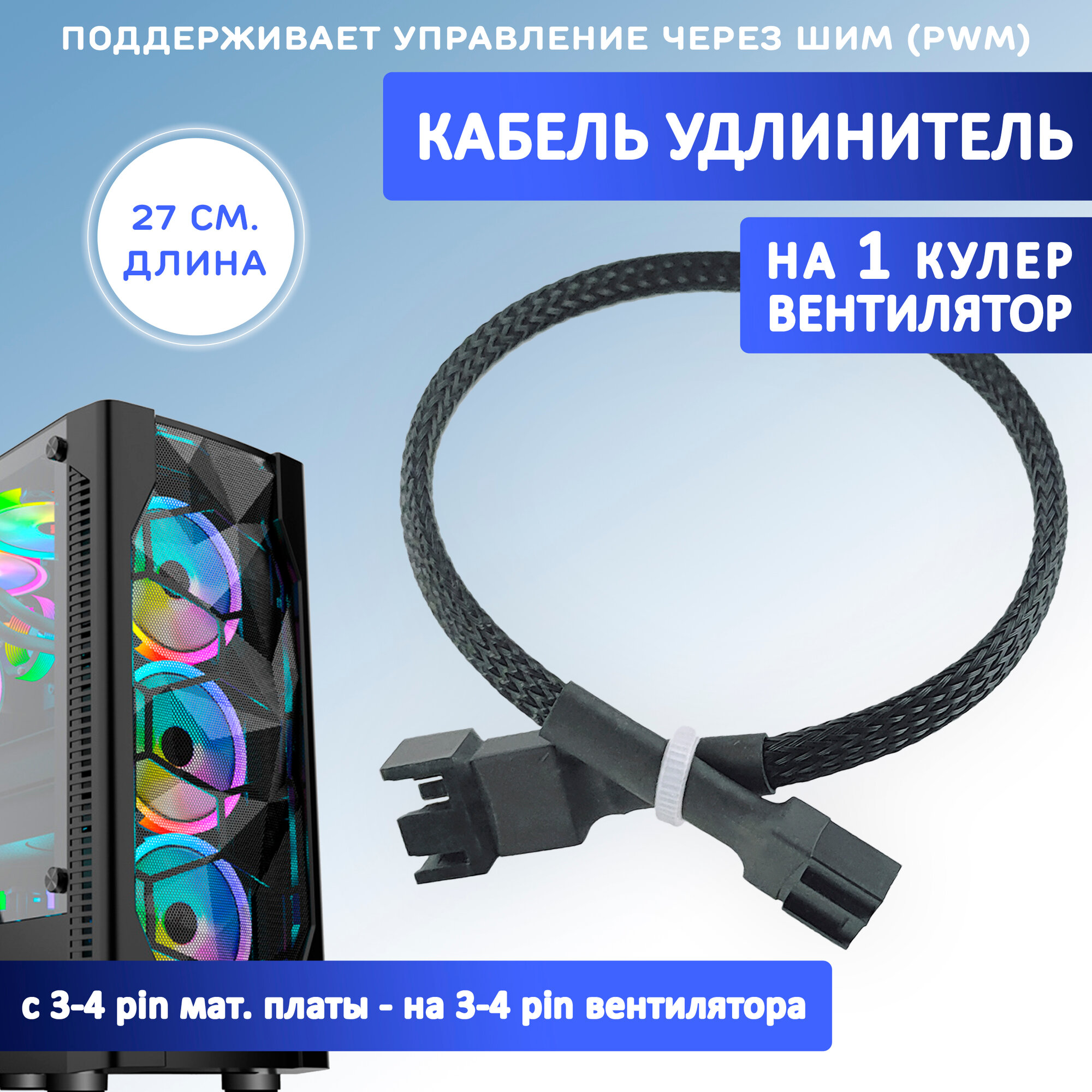 10 цен на Кабель удлинитель для кулера/вентилятора на 3-4 pin. PWM, 27см, чёрный в оплетке