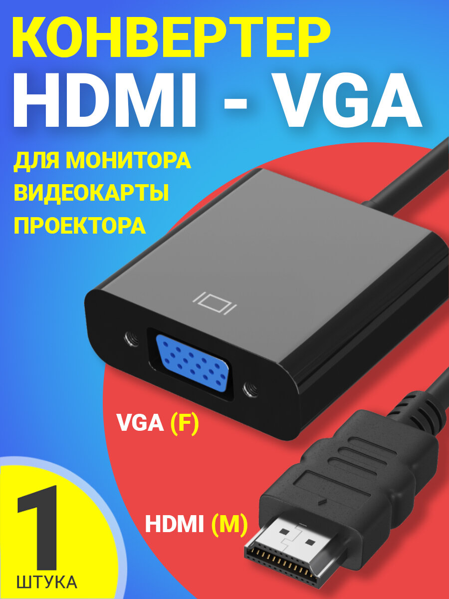 10 цен на Переходник адаптер GSMIN B5 HDMI (M) - VGA (F) конвертер для монитора, видеокарты, проектора (Черный)