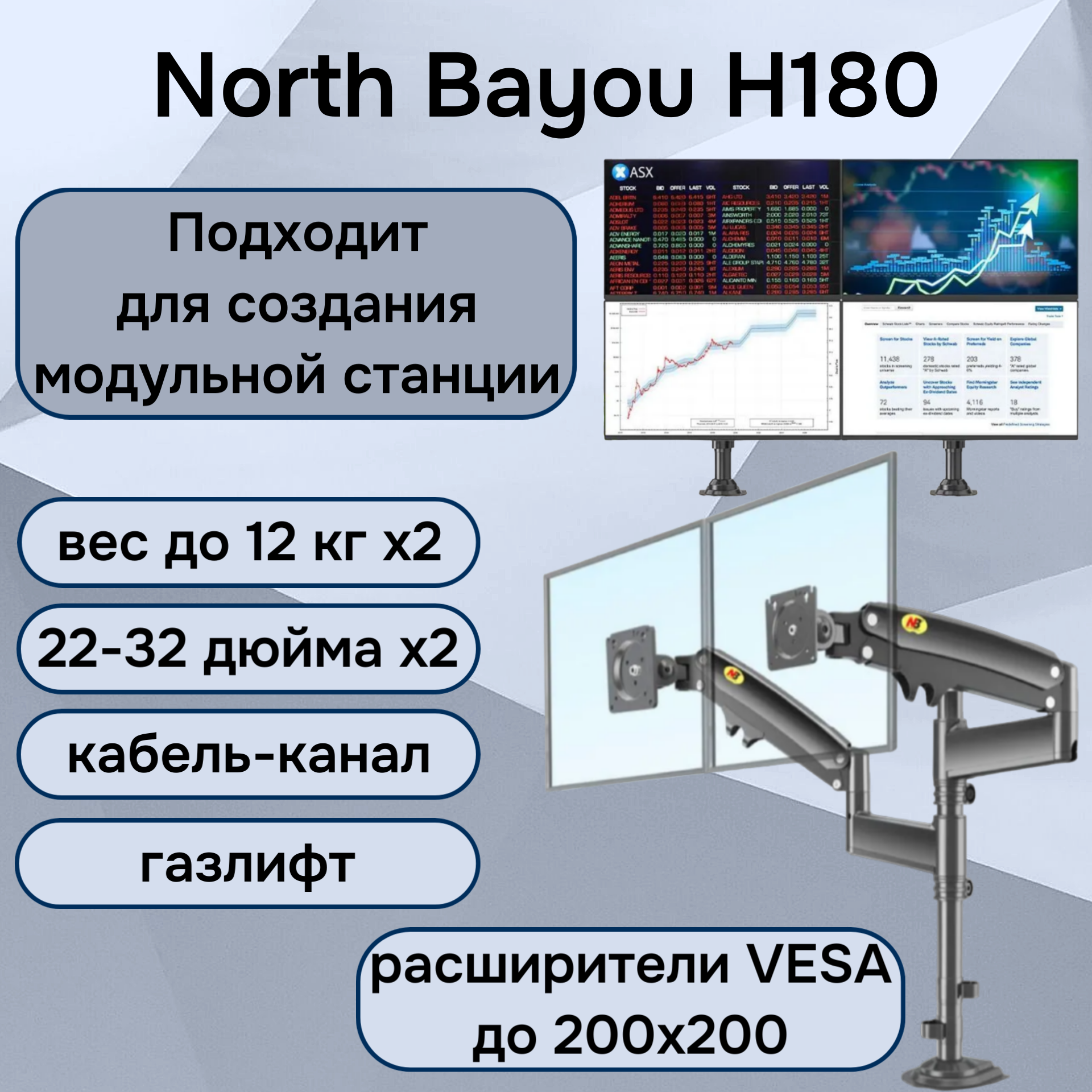 Двойной настольный кронштейн NB North Bayou H180 для мониторов 22-32" до 12 кг, черный информация: