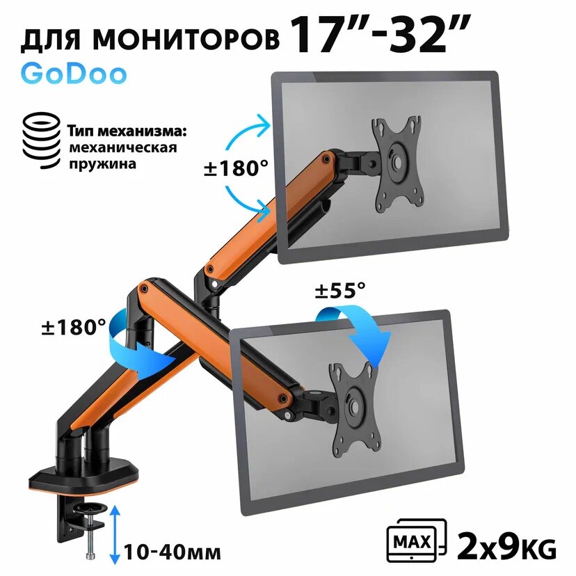 10 цен на Кронштейн для двух мониторов Godoo 17"-32" дюймов настольный LDT63-C024G Matte Black & Orange