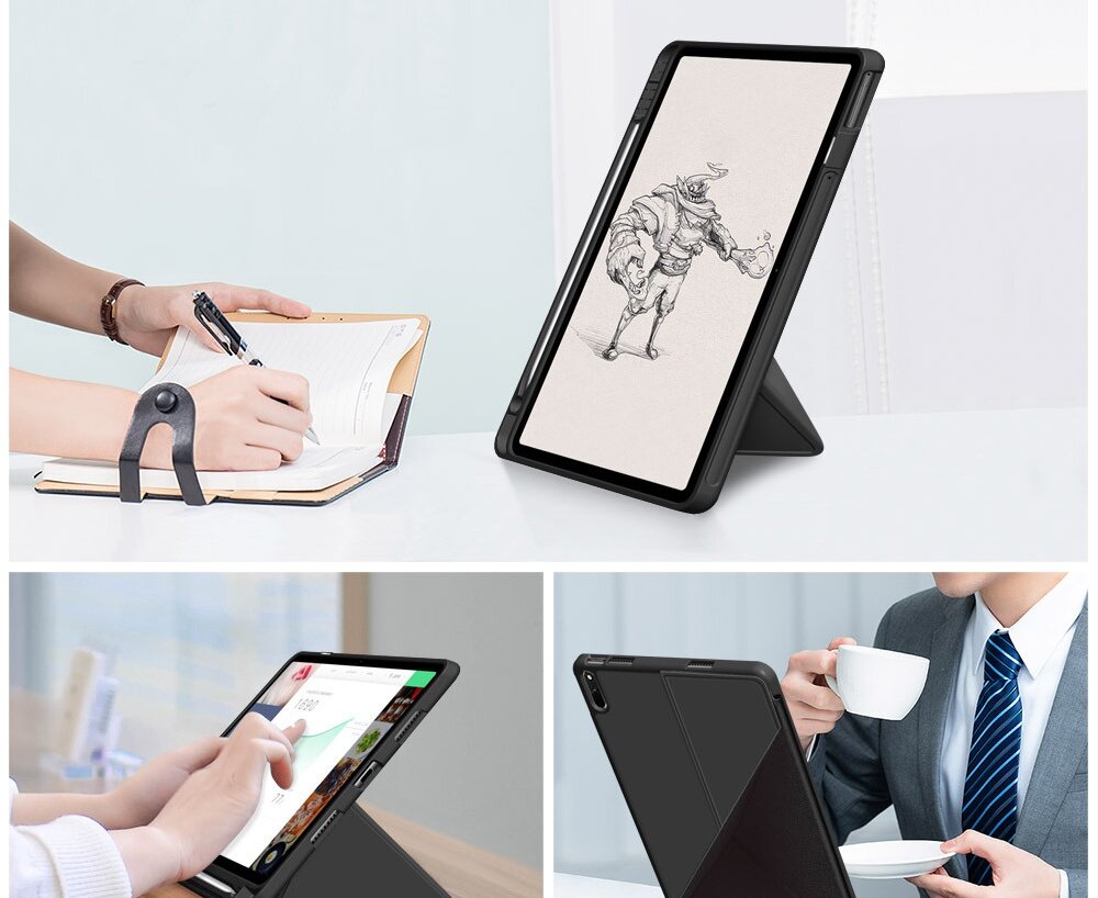 Чехол-обложка MyPads для Huawei MediaPad M5 10.8/ M5 10.8 Pro тонкий умный кожаный для пластиковой основе с трансформацией в подставку черный
