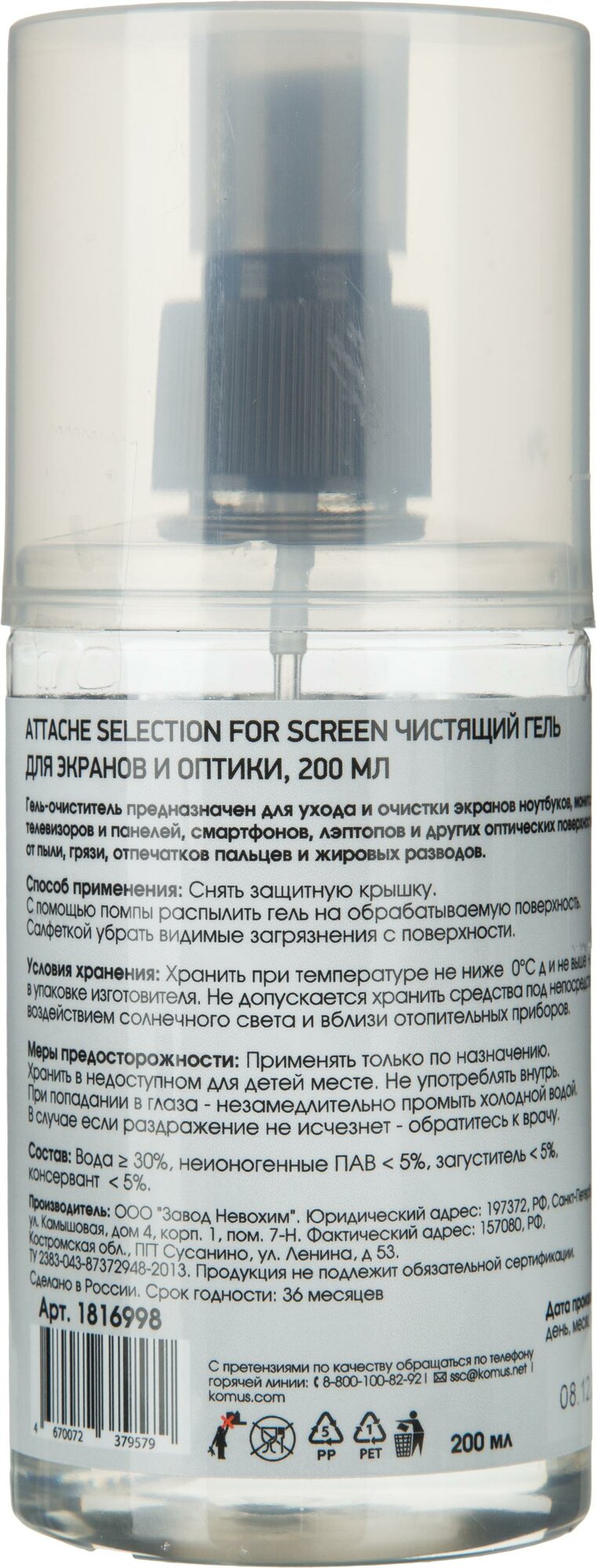 Гель для чистки экранов и оптики Attache Selection 200 мл информация: