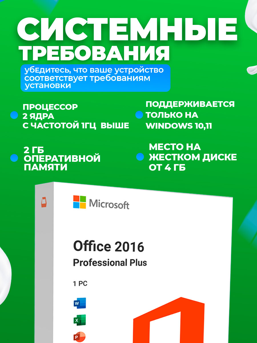 Microsoft Office 2016 Pro Plus - ключ активации, бессрочная лицензия на 1 устройство, онлайн активация информация: