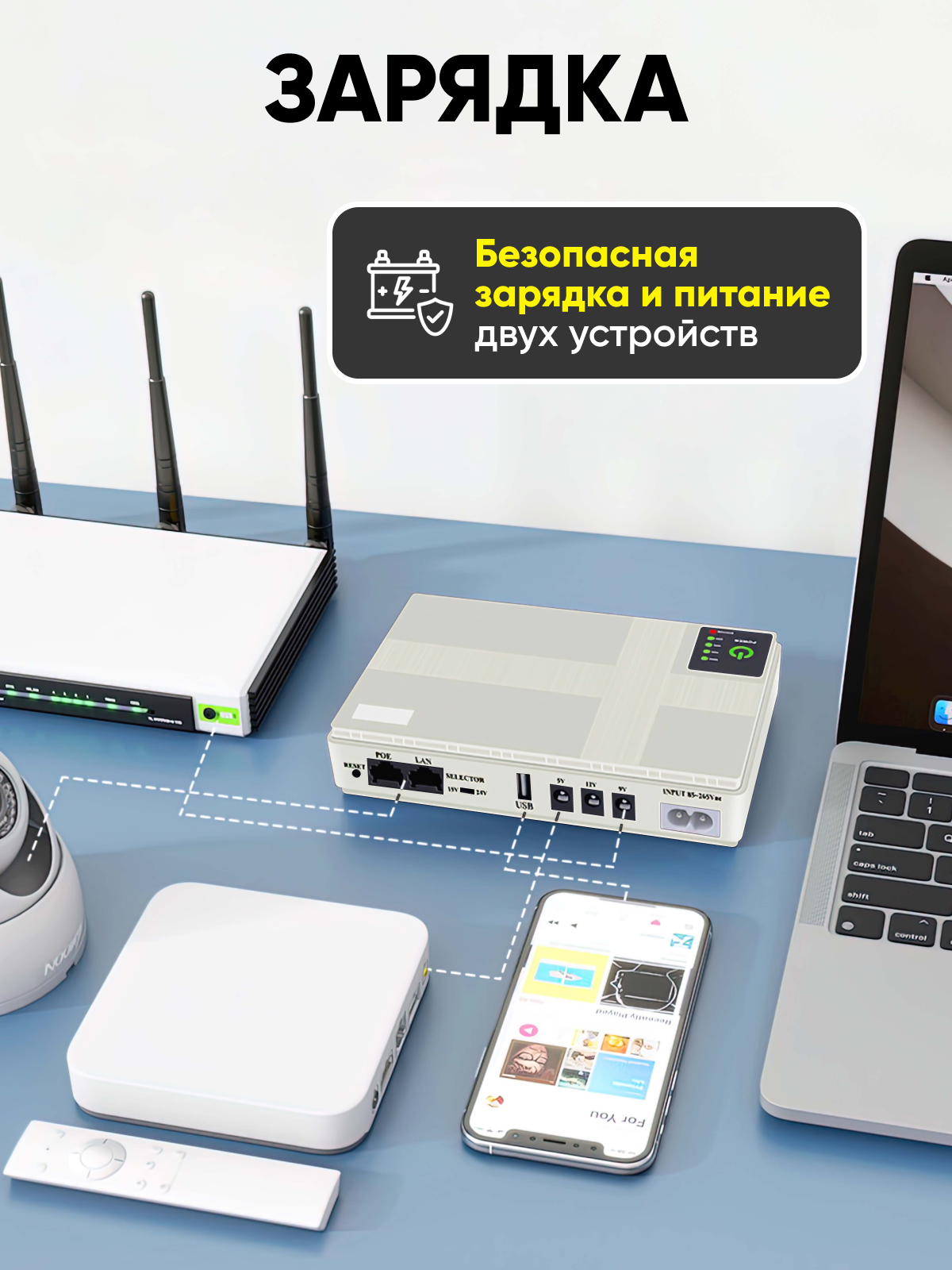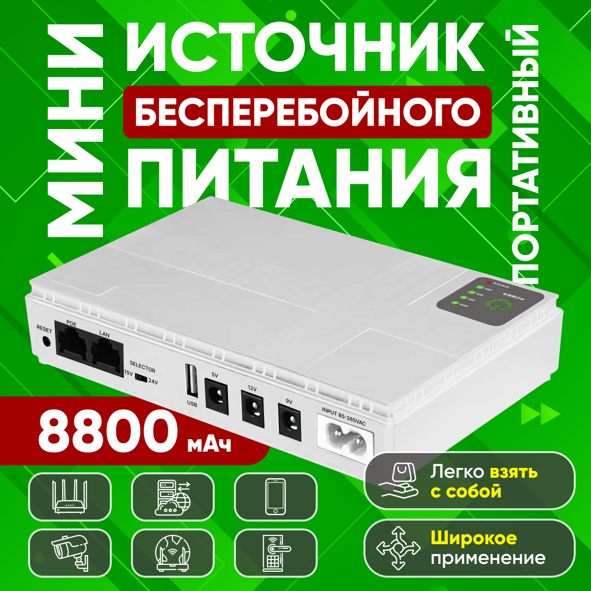 Мини-UPS для роутера (12В, 9В, 5В, USB, PoE 12-24. LAN) Источник бесперебойного питания.