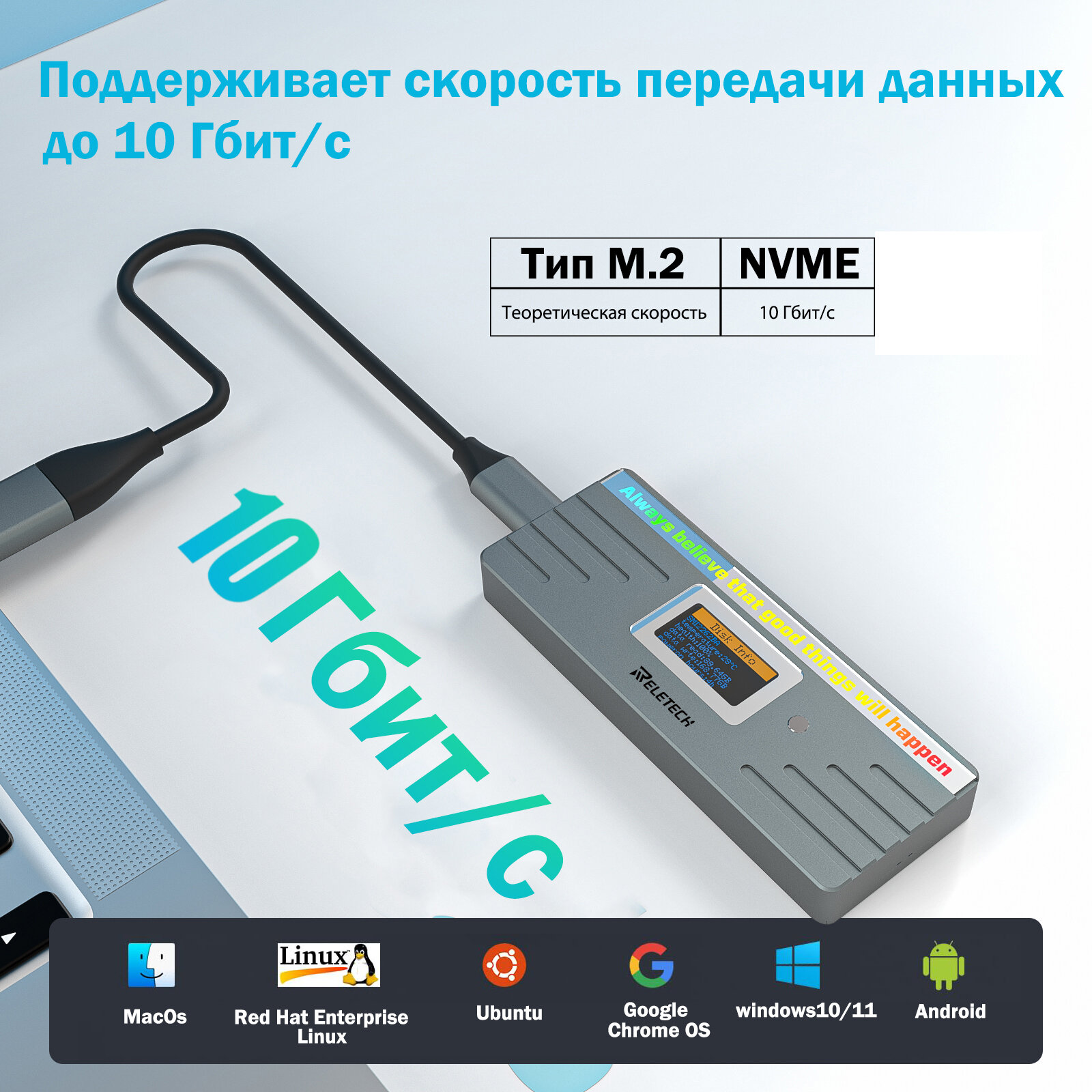 Отзывы на Reletech Корпус твердотельного накопителя M.2 NVMe / SATA, USB 3,2 Gen 2 10 Гбит / с, внешний корпус адаптера M2