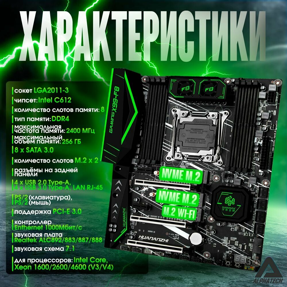 Материнская плата HUANANZHI X99-F8, LGA 2011-3 ( 8хDDR4 2400 МГц 2 x NVME M.2 SSD ) информация: