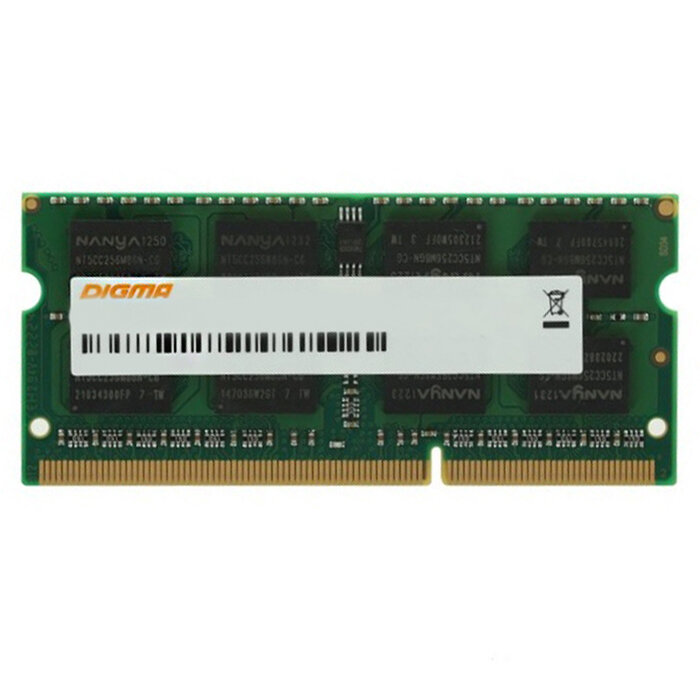 Оперативная память Digma DDR3L - 8ГБ 1600МГц, SO-DIMM 204-pin 1.35В/1.5В, RTL PC3-12800 CL11 (DGMAS31600008D)