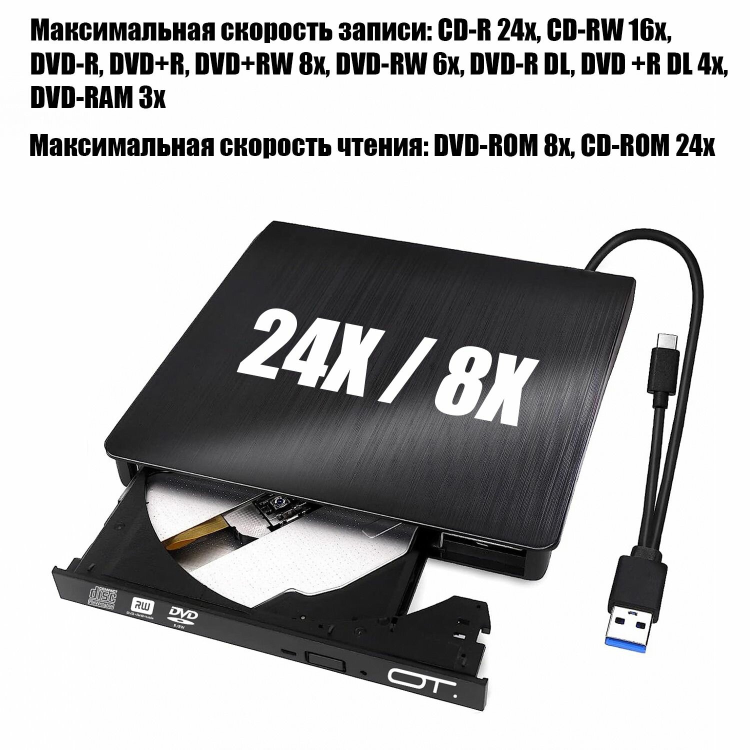Внешний дисковод для ноутбука и ПК USB 3.0 / Type-C CD-RW, DVD-RW Орбита OT-PCA03 информация: