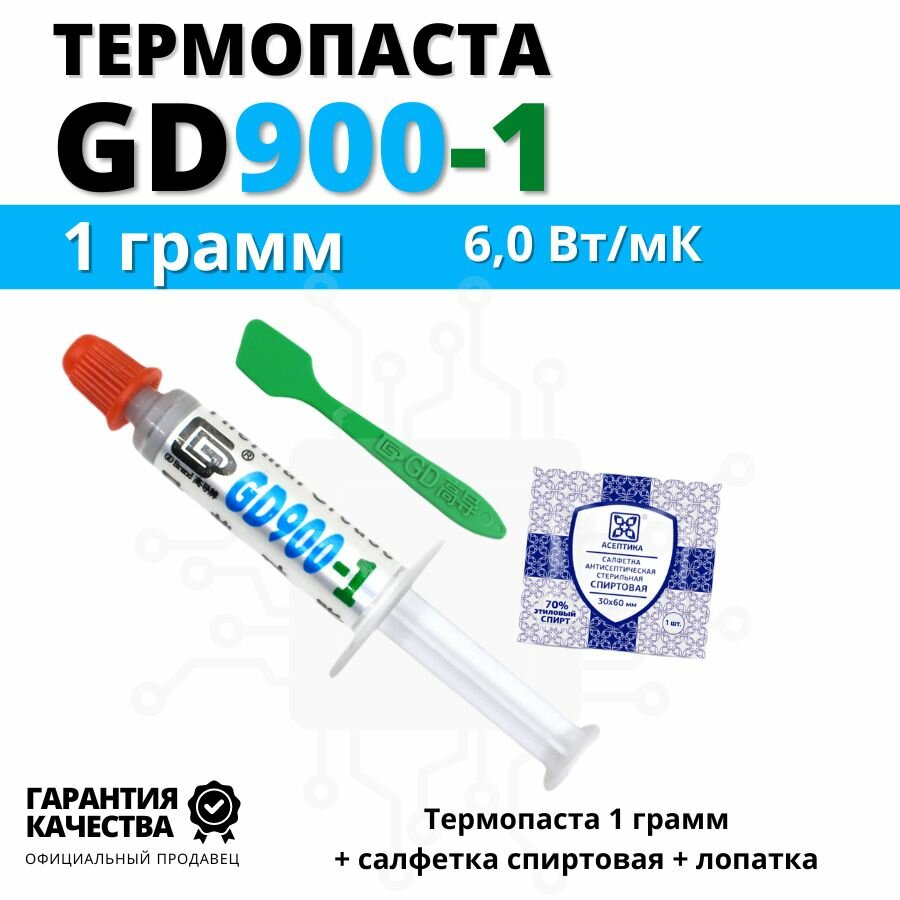 Термопаста GD900-1 теплопроводность 6,0 Вт/мК, 1 грамм в шприце с лопаткой и салфеткой информация: