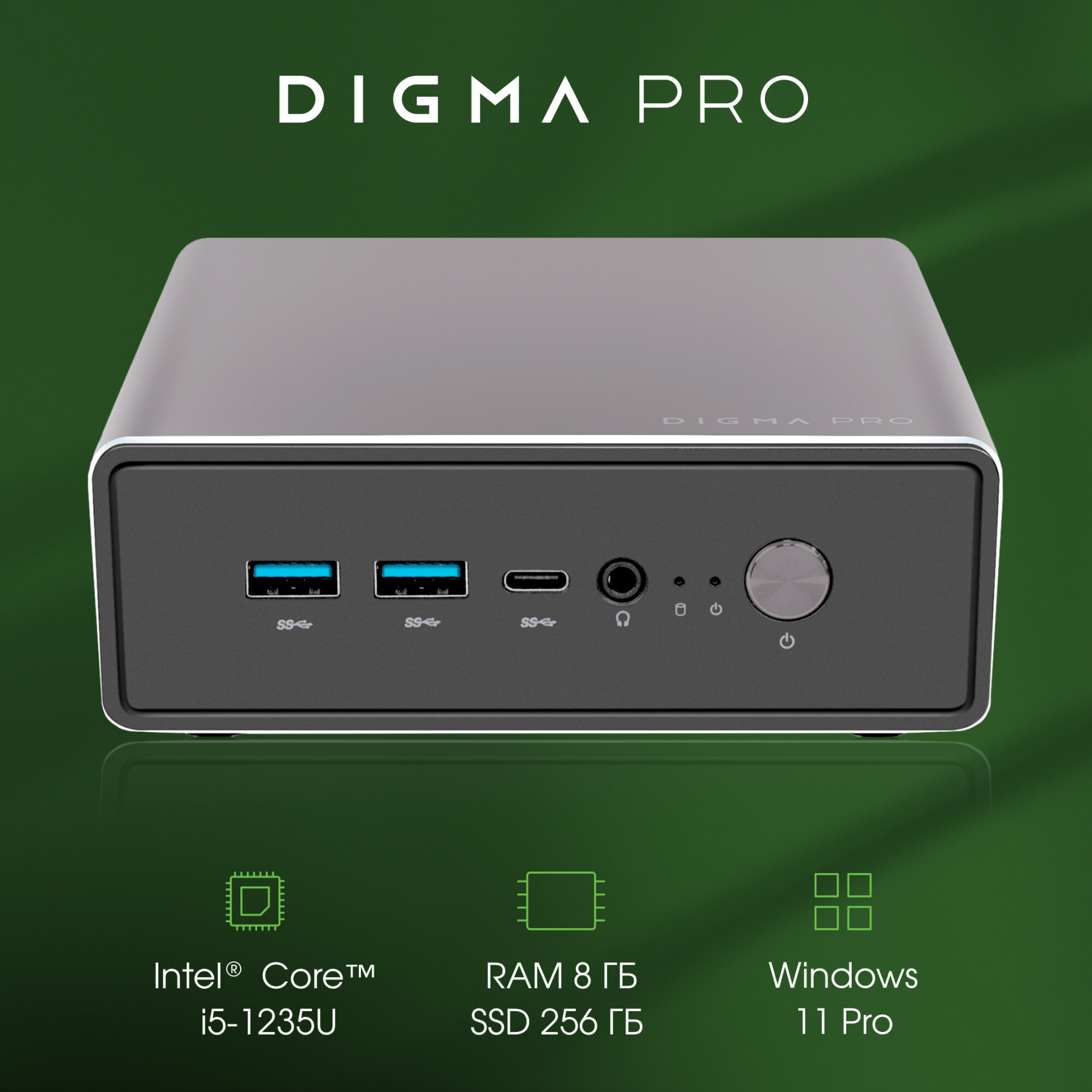 компьютер, мини пк Digma Pro Minimax U1, Core i5 1235U, 8/ 512ГБ, Intel UHD Graphics, Windows 11 Professional, темно-серый 29 800 ₽