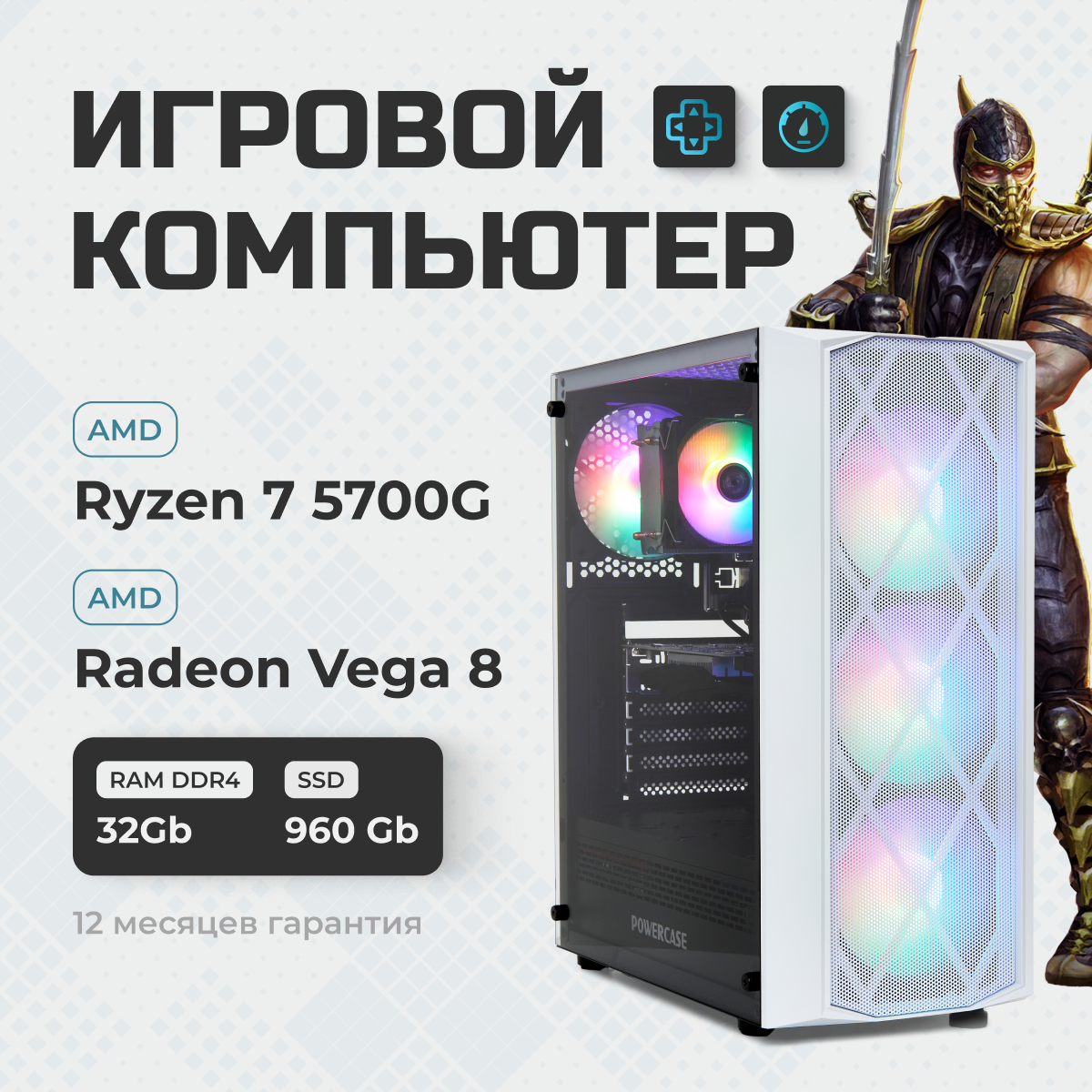 Игровой компьютер TREIDCOMPUTERS Системный блок Ryzen 7 5700G 3,8 (8 ядер) / 32 Гб / SSD 960 gb / AMD Radeon Vega 8 информация: