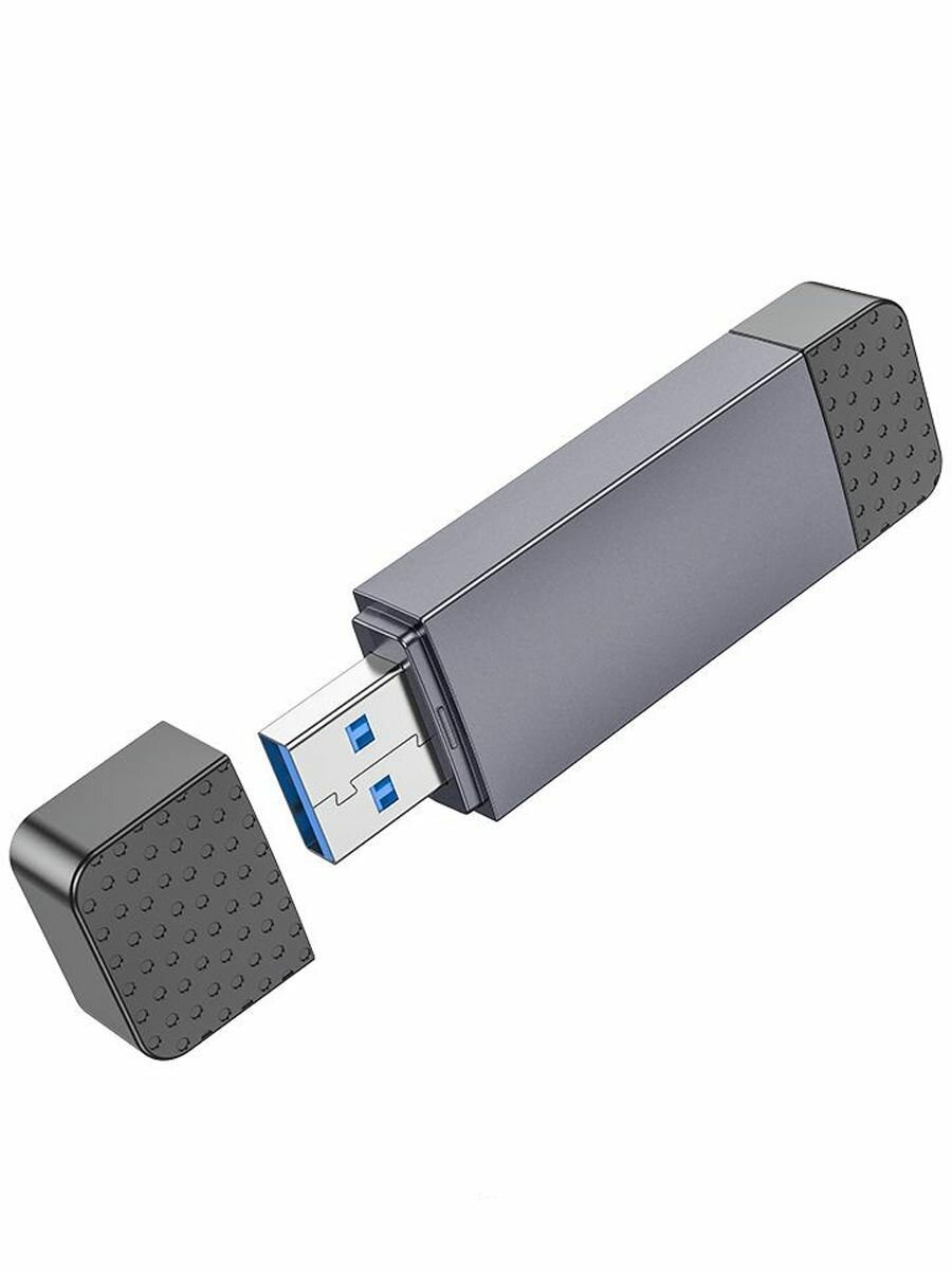 Картридер Hoco HB45 Spirit 2-в-1 USB / Type-C 3.0 для SD и MicroSD / TF карт, серый