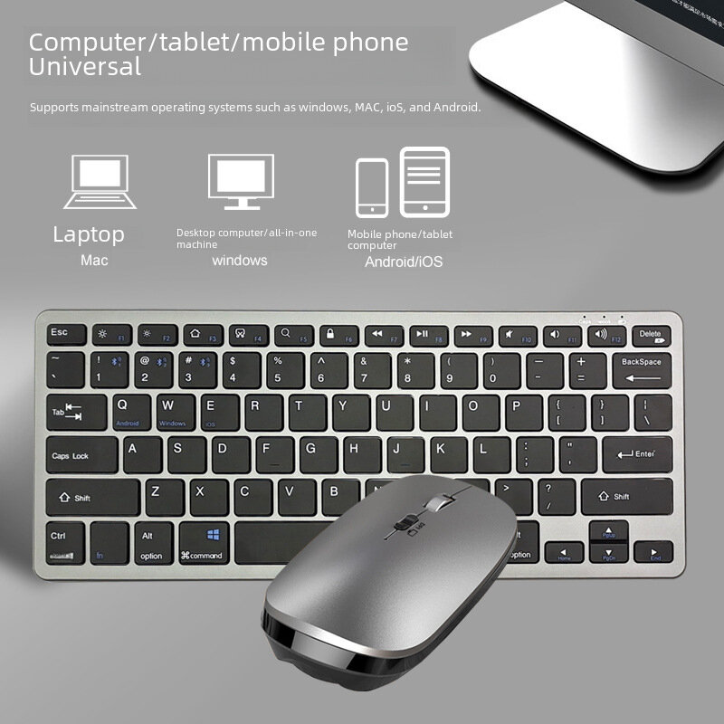 10 цен на Клавиатура и мышь 78-клавишная, Typec, Bluetooth, перезаряжаемые, бесшумные, серебристые