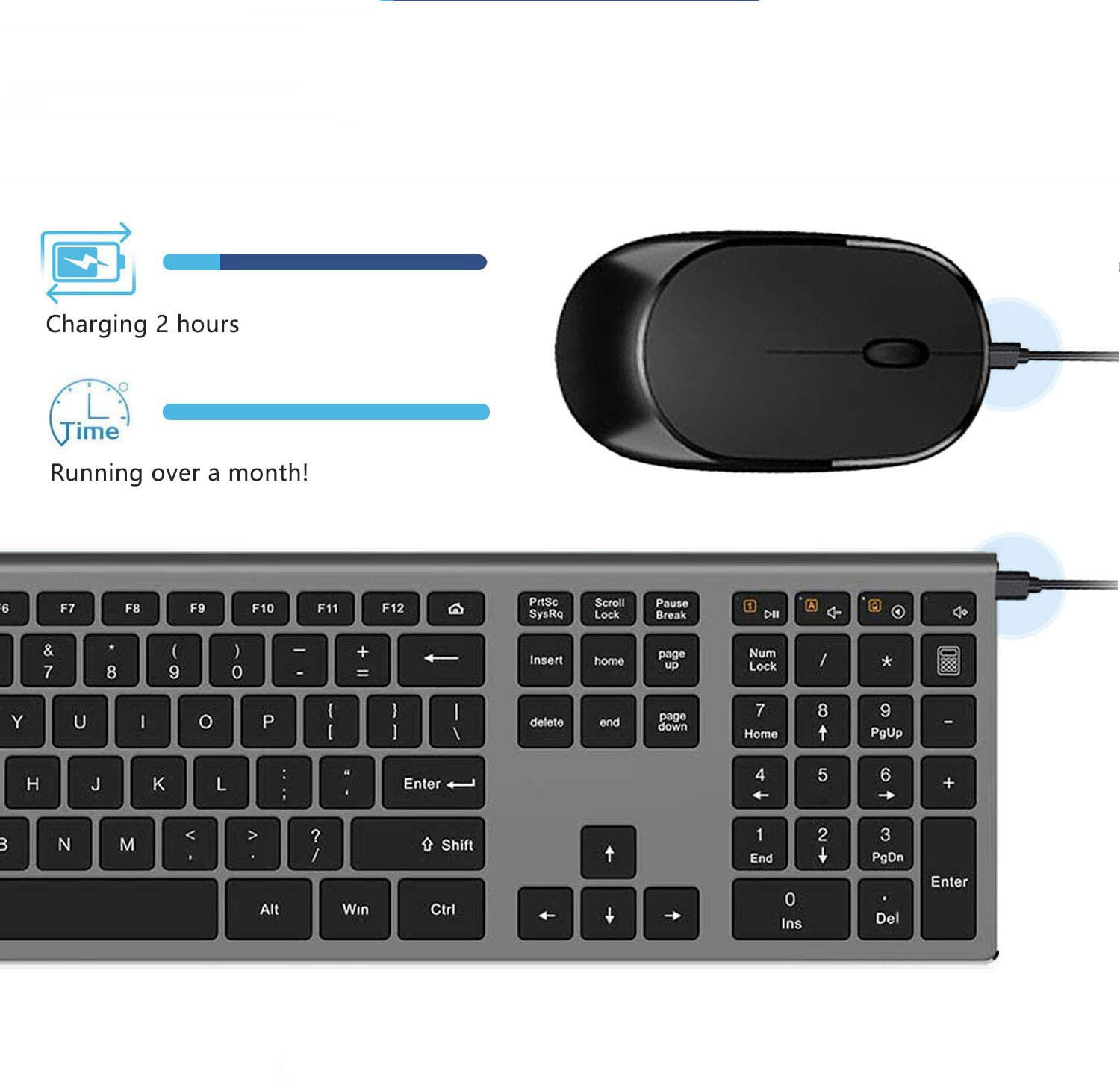 Отзывы на Клавиатура и мышь, USB, перезаряжаемые, 109 клавиш, 2.4G, беспроводная, английская версия