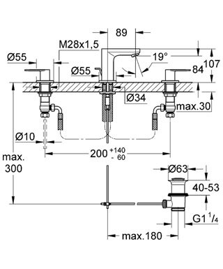 Смеситель для раковины Grohe Eurosmart Cosmopolitan вентильный, на 3 отверстия, с донным клапаном, хром 20187000 информация: