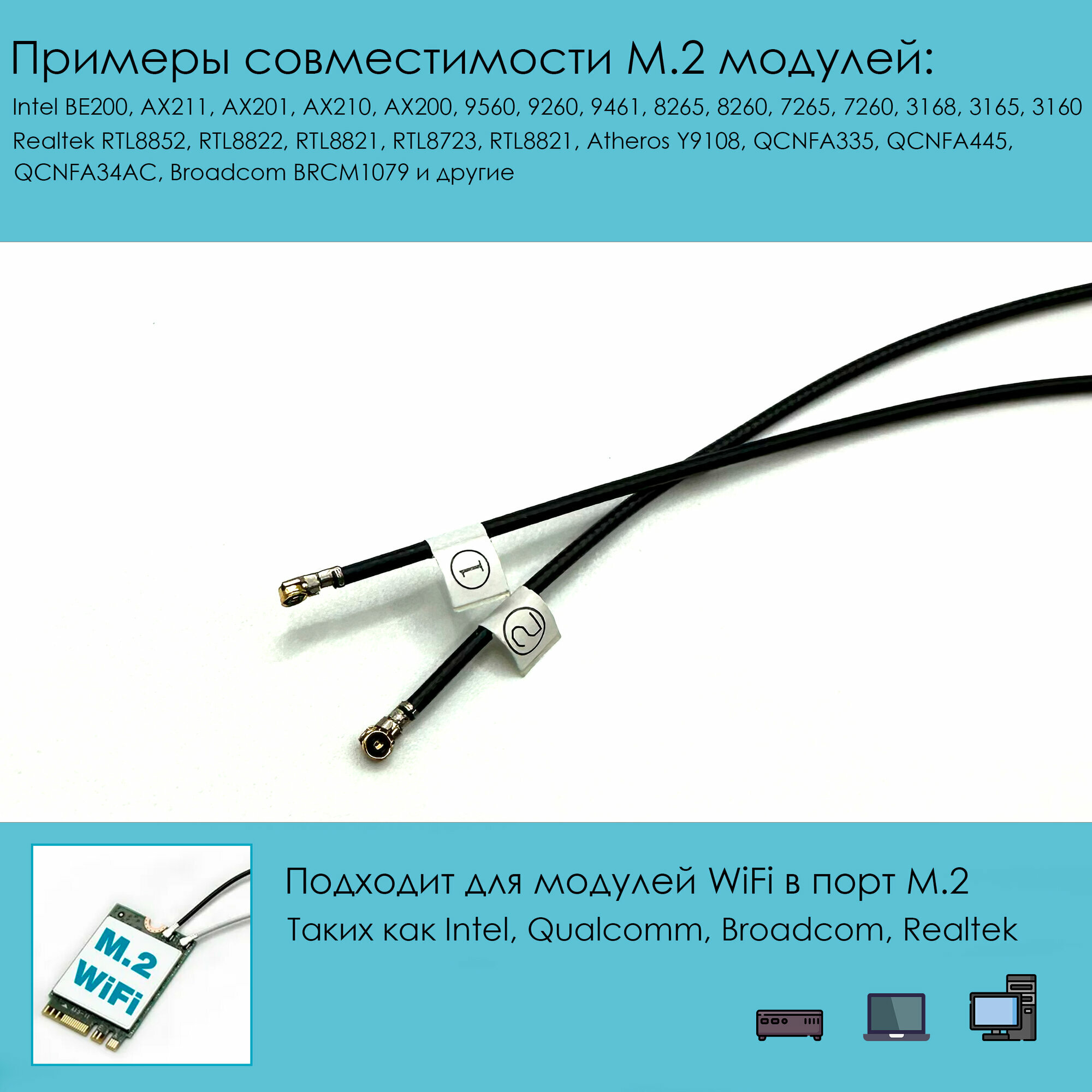 Антенны WiFi внутренние для модулей M.2 NGFF Seatek ver.3 информация: