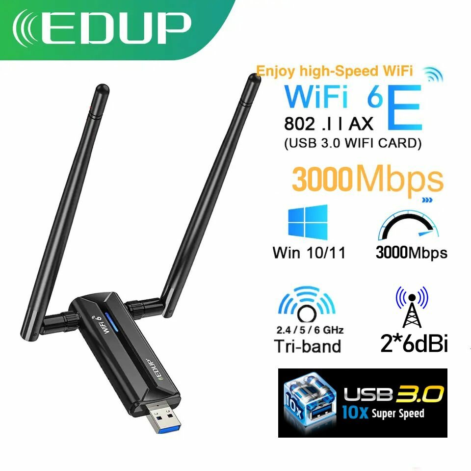 10 цен на EDUP WiFi 6E USB адаптер (USB 3.0) 3000Мбит/с Dual Band 2.4G/5.0G/6G 802.11ax