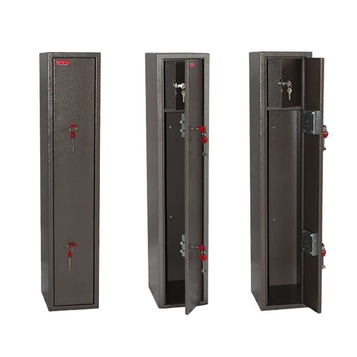 Оружейный сейф шкаф Контур Д-5 на 2 ружья. Макс. высота ружья 980 мм. 30х20х100 мм. Ключевой замок. Соответствует требованиям МВД РФ.