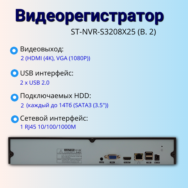 Видеорегистратор цифровой, 36 каналов до 8Mp, ST-NVR-S3208X25(В.2) информация: