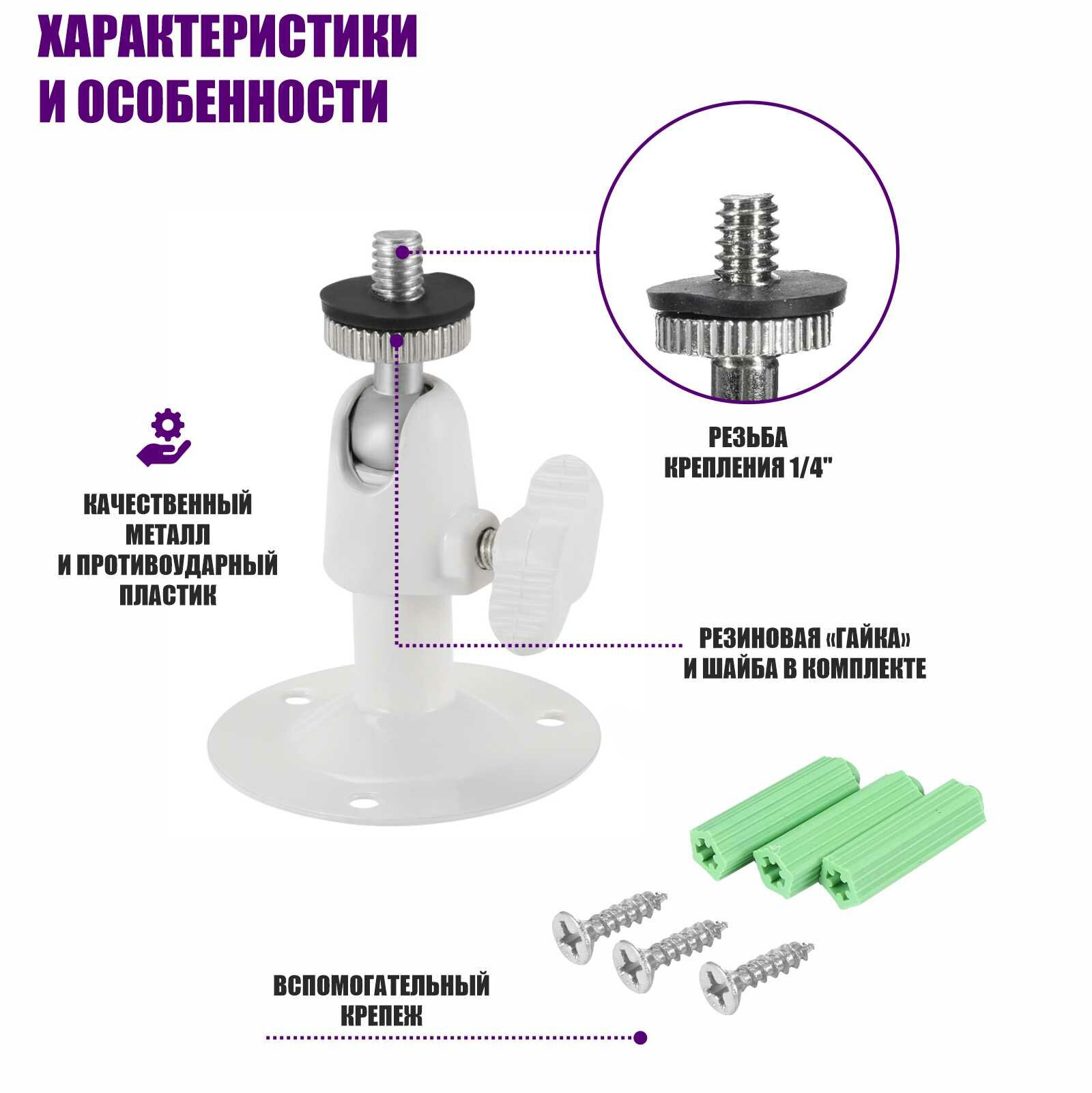 Настенное крепление NKSH-14W с шаровой головкой и резьбой 1/4", цвет белый, 2 шт информация: