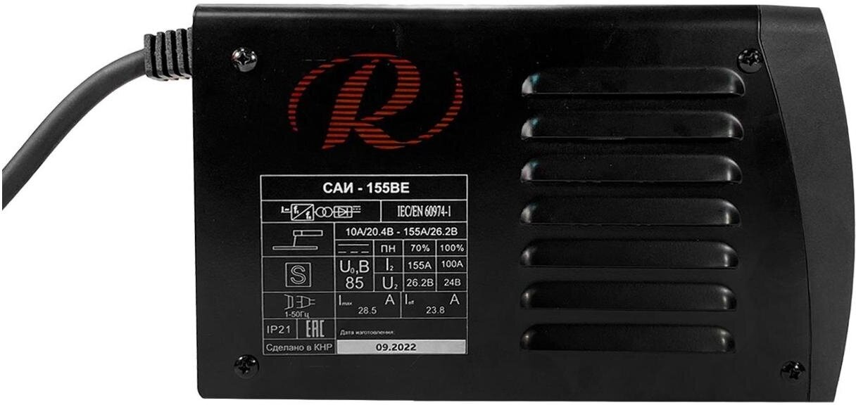| Комплектация | паспорт; сварочный аппарат; кабель с держателем электрода; кабель с заземляющей клеммой |