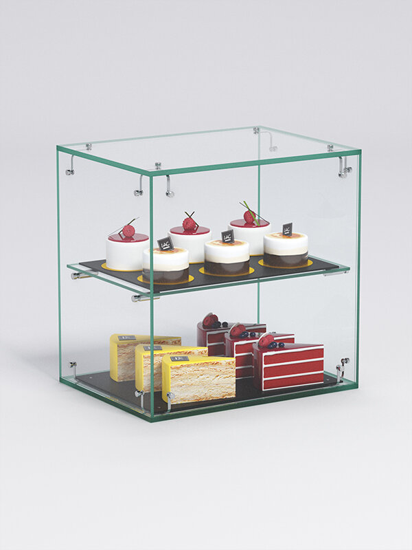 Витрина "сладость" №16А-О для выпечки настольная с прямыми полками без дверки, Стекло 40 x 30 x 40 см информация: