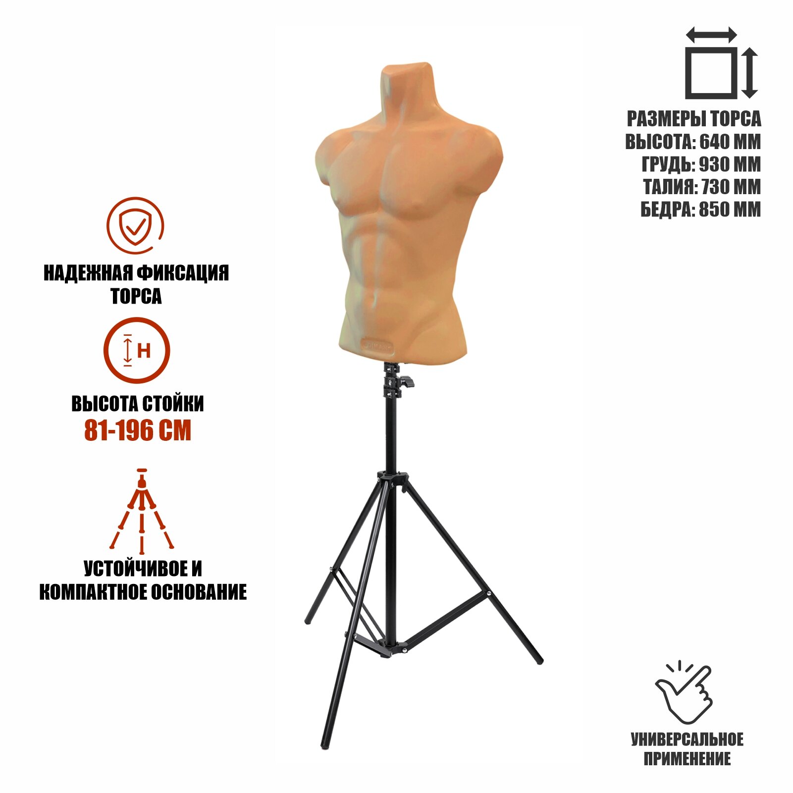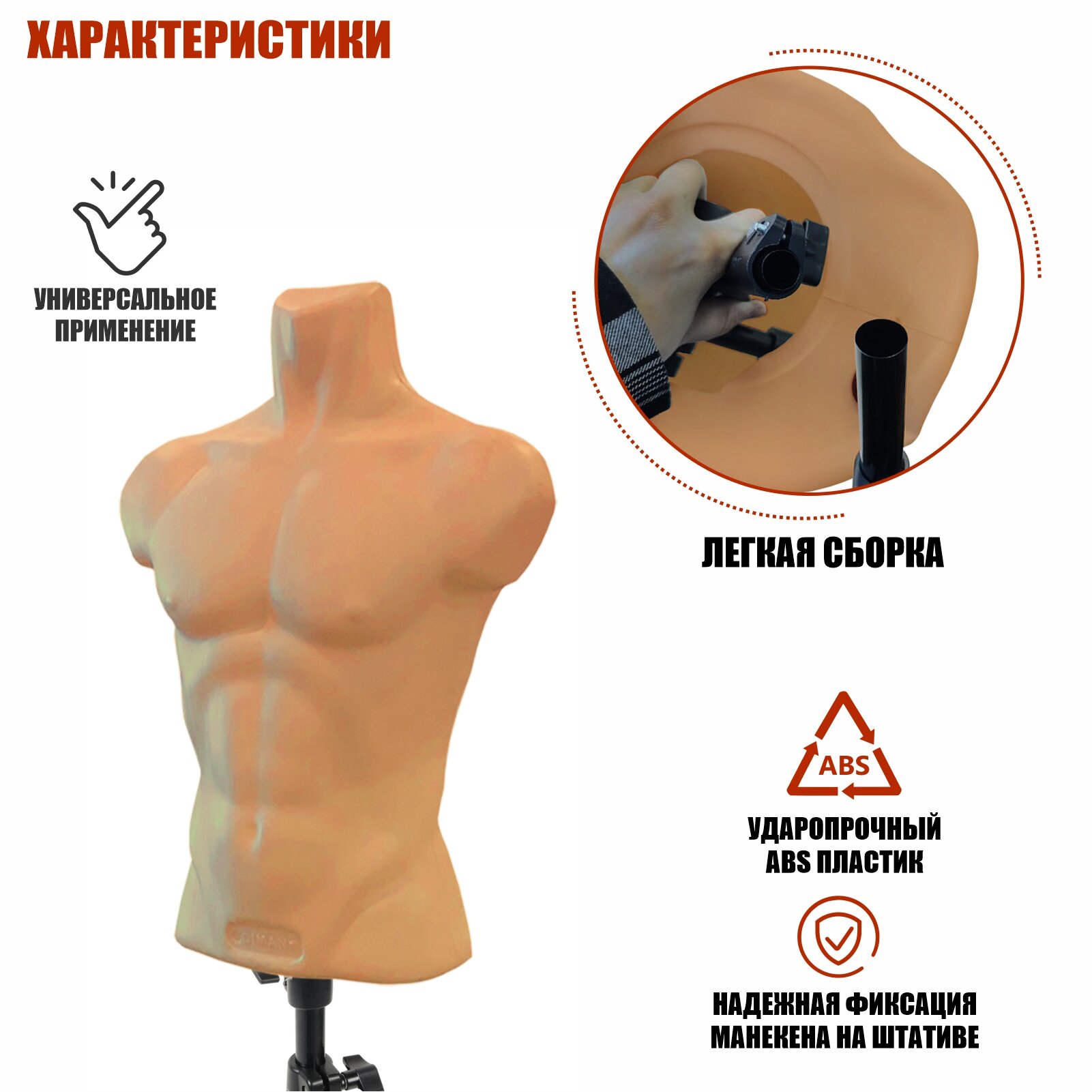 Манекен 640 мм, торс мужской телесный пластиковый на напольной стойке JBH информация: